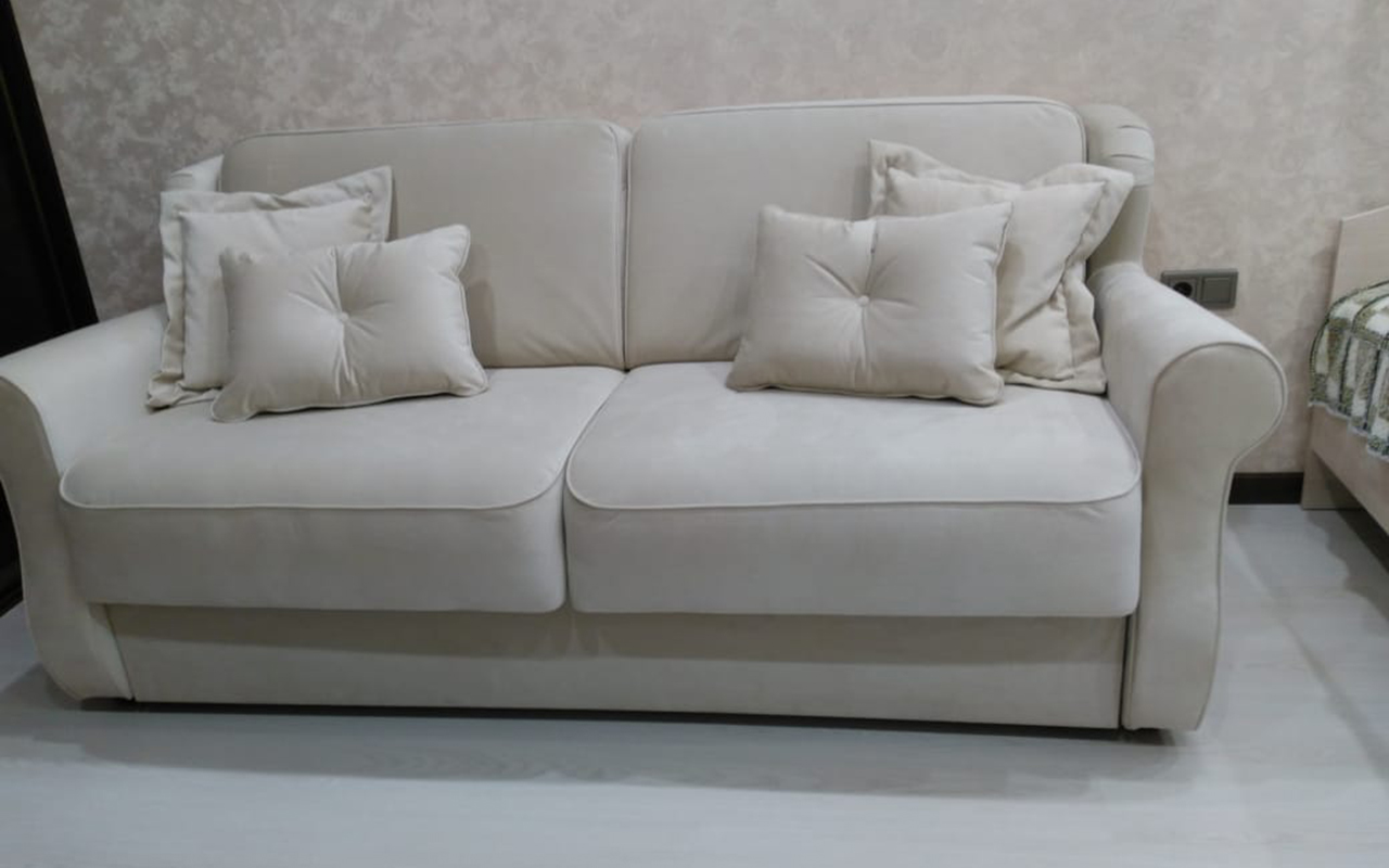 Ткань приятная, диван вместительный, мягкий. Для постоянного сна не подходит, но для отдыха всей семьей самое лучшее место !