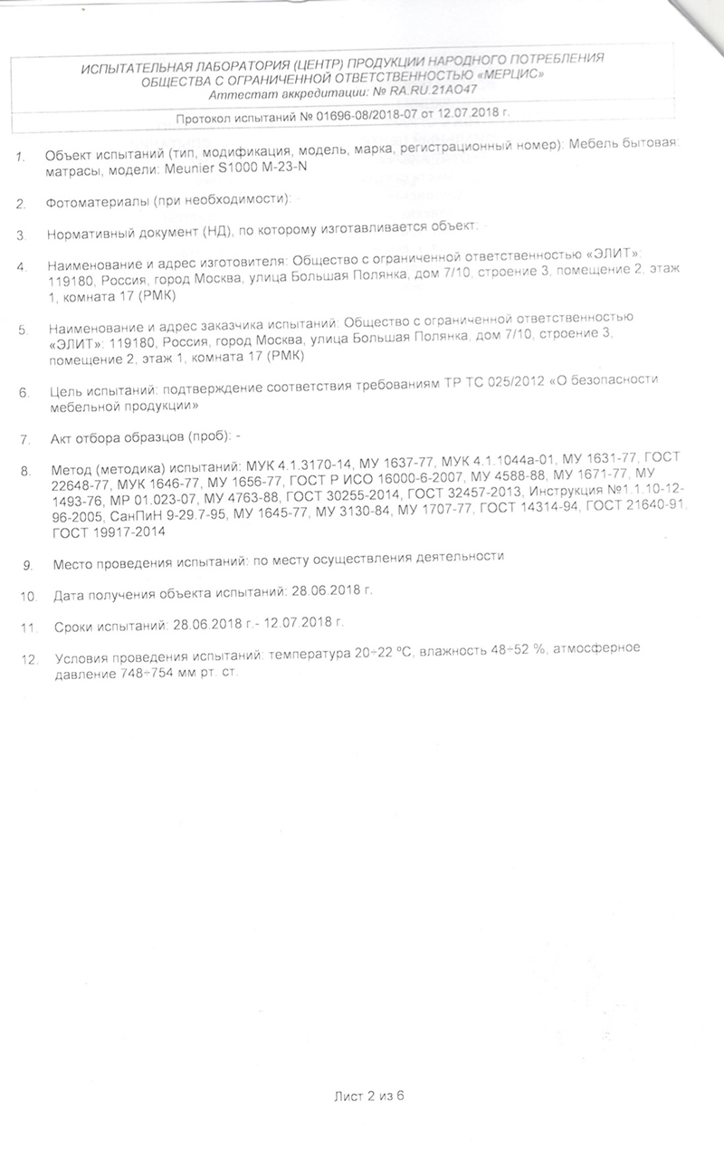 Состав матраса