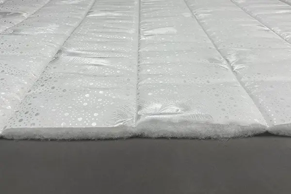 Верхнее покрытие матраса смесовый жаккард, стеганый на синтепоне- высокопрочная ткань, состоящая из синтетических материалов с добавлением нитей из натуральных тканей с особым переплетением волокон. Смесовый жаккард может быть двойным (дублированным) или недублированным. Как правило, дублированный жаккард используют в качестве верхнего покрытия для матрасов, чехлов и наматрасников. Самой важной характеристикой ткани является его прочность и износостойкость.